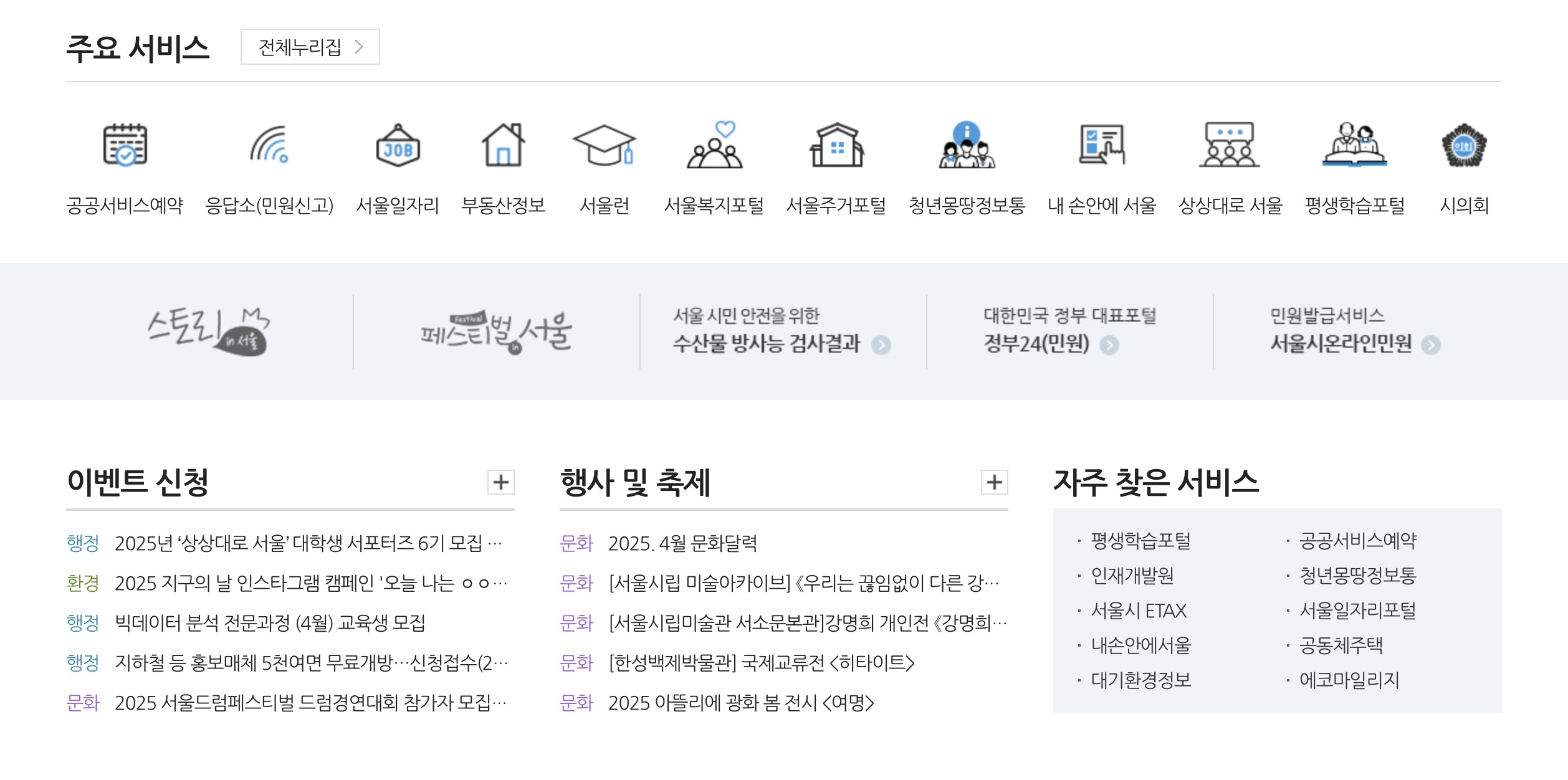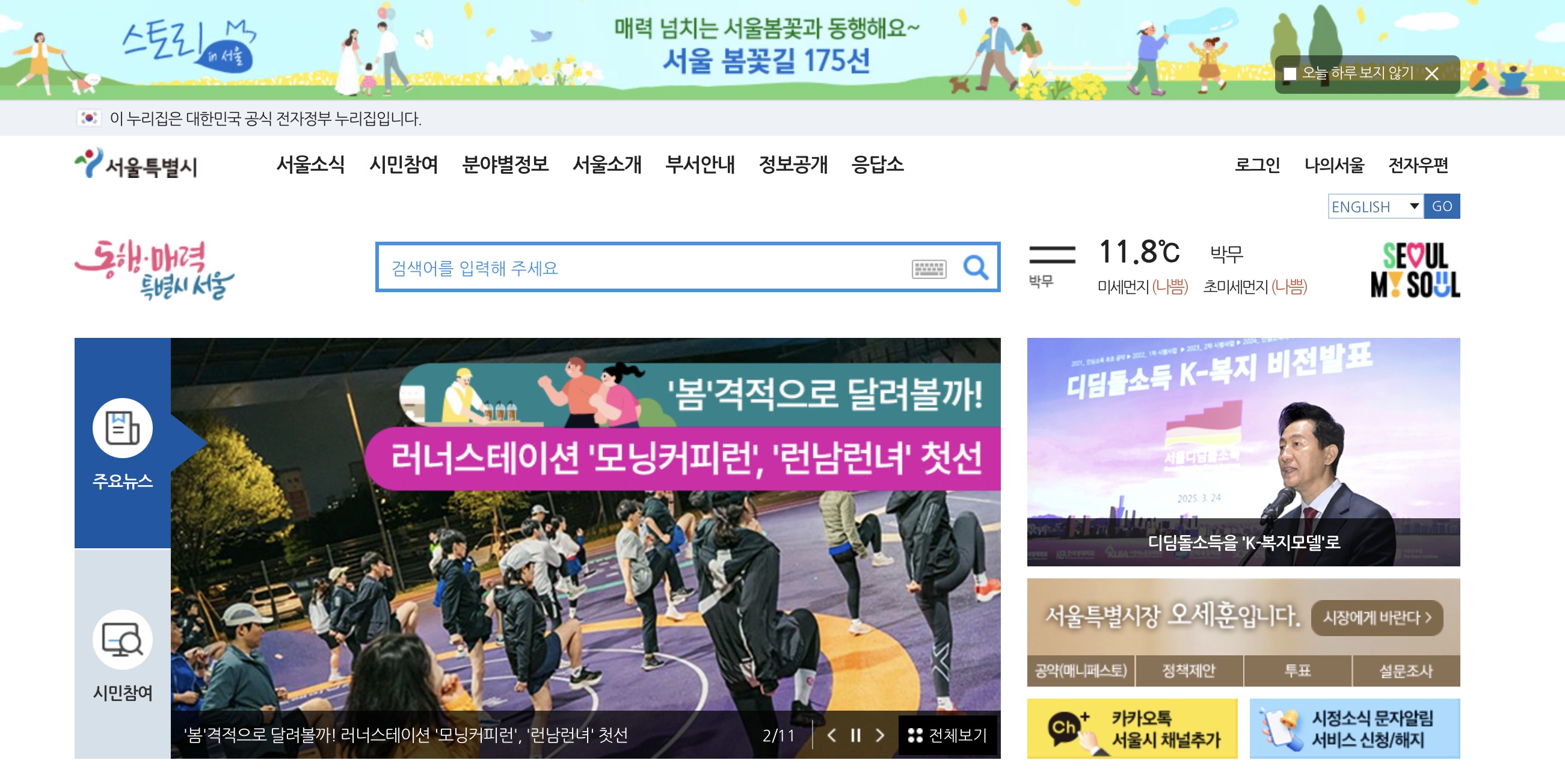 서울시는 대한민국의 수도로, 정치·경제·사회·문화의 중심지입니다. 서울시 공식 홈페이지(http://www.seoul.go.kr)에서는 시민과 방문객을 위한 다양한 행정 서비스, 민원 신청, 채용 공고, 생활정보 등을 제공합니다. 서울시 홈페이지 이용 방법, 본인인증 및 보안, 고객센터 연락처, 채용 공고 등 주요 기능을 확인해 보세요.
